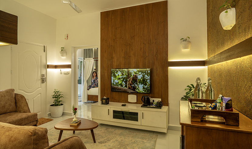 The Cottage is designed to offer a seamless blend of comfort and nature. This well-furnished cottage features a cozy living room, a tranquil bedroom, and a sleek washroom with modern amenities. The highlight is the private sit-out area, offering a serene garden view – a perfect space for relaxation or enjoying a morning coffee.