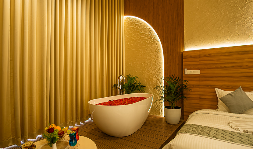 For couples seeking an extra touch of coziness, Luxury Cottages offers our exclusive bathtub suites designed for ultimate relaxation. Each suite features a spacious bathroom with a relaxing bathtub, perfect for unwinding after a day of exploration. Step out onto your private balcony and enjoy breathtaking views of the majestic mountain ranges. At our brand-new 5-star resort every detail is crafted to ensure a premium Munnar getaway, complete with luxurious amenities.